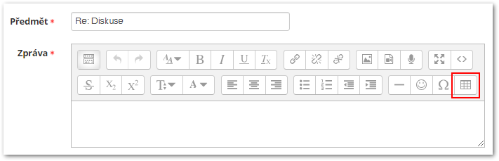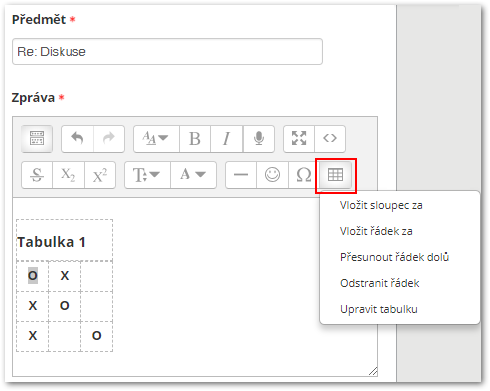 Vloženou tabulku lze dále upravovat tak, že do tabulky kliknete a následně opět kliknete na ikonu Tabulka, pomocí které můžete následně tabulku upravit (viz obr. 3).