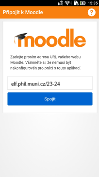 Po prvním spuštění je třeba do aplikace zadat adresu systému Moodle, ke kterému se chcete připojit. V našem případě je to elf.phil.muni.cz/23-24. Dále budete přesměrování na přihlašovací stránku, kde již stačí zadat své obvyklé přihlašovací údaje.